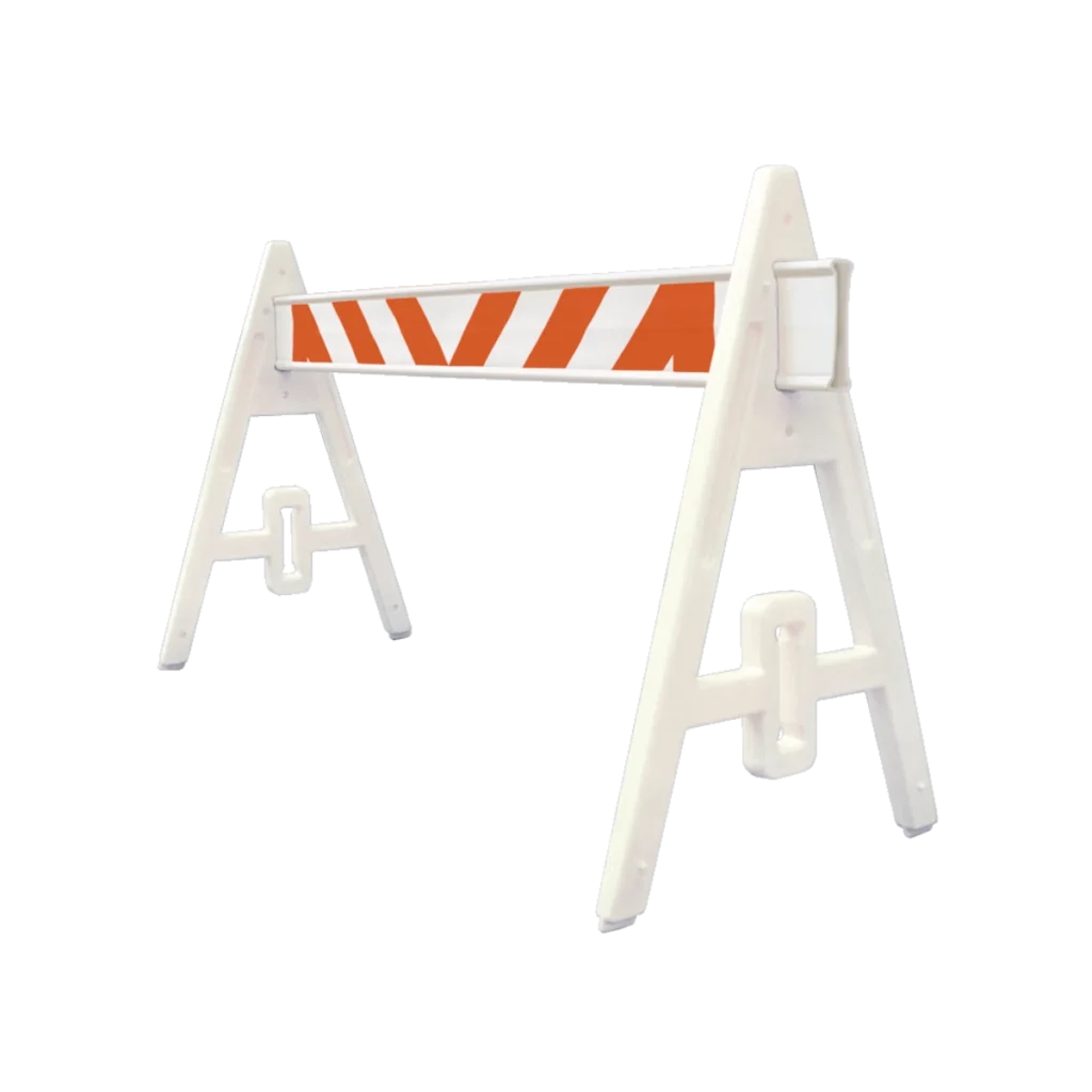 Barrera plástica para protección en reparaciones viales o usada como señal de advertencia y control en retenes policiales y militares o en cualquier tipo de evento donde se requiere confinar áreas en específico. Al ser ensamblable se vuelve un accesorio fácil de armar, transportar y almacenar. Cuenta con dos barreras. Se puede llenar de agua incrementando su peso y estabilidad. Fabricada en polietileno de alta densidad con U.V.