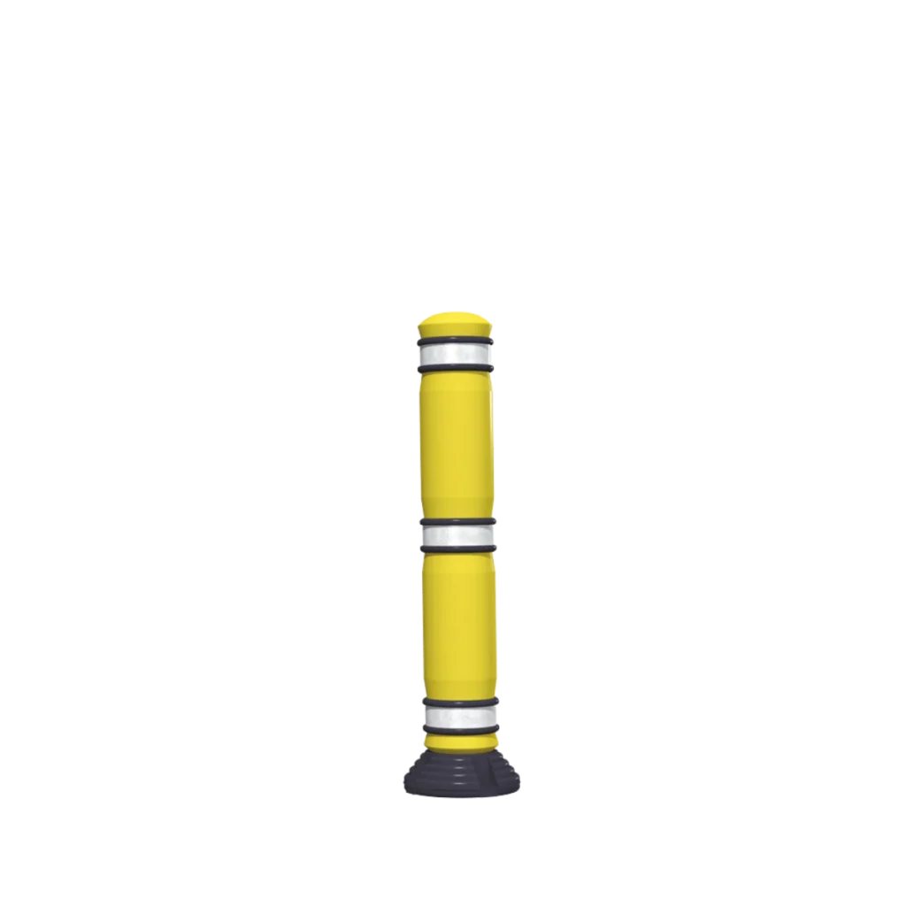 El mas grande de nuestros Hitos abatibles. Por su tamaño es adecuado para canalizar carriles de ciclopistas, cajones de estacionamientos, accesos a plazas, etc. Con sistema de recuperación que regresa el Hito a su posición original después de ser impactado. Base para anclarse al piso o por su peso puede usarse para señalamiento temporal.