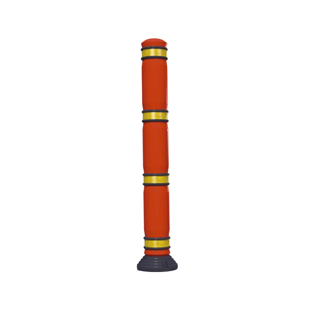 El mas grande de nuestros Hitos abatibles. Por su tamaño es adecuado para canalizar carriles de ciclopistas, cajones de estacionamientos, accesos a plazas, etc. Con sistema de recuperación que regresa el Hito a su posición original después de ser impactado. Base para anclarse al piso o por su peso puede usarse para señalamiento temporal.