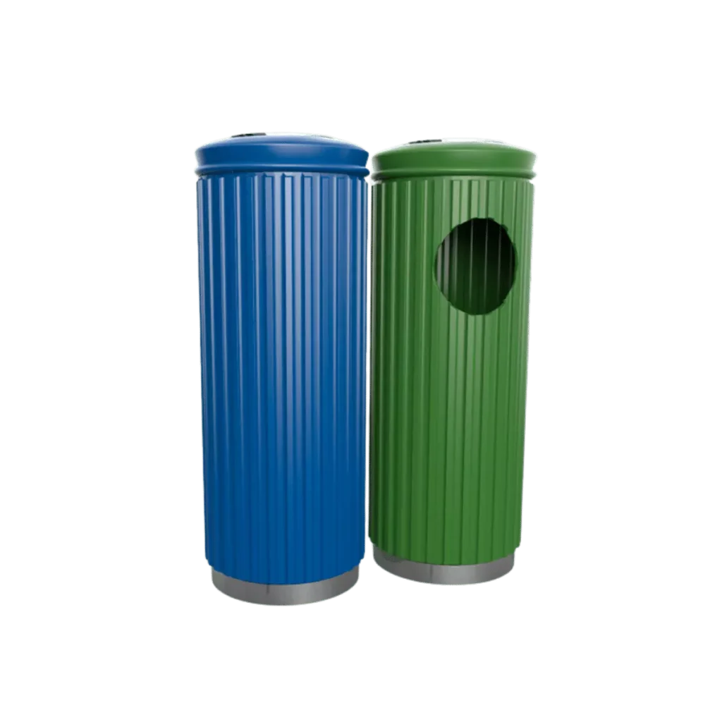 - Papelera ORNAMENTAL 50 compuesta de 2 piezas; tapa y bote, fabricada en polietileno de media densidad, mediante el proceso de rotomoldeo, para darle mayor resistencia a impactos y evitar deformaciones.