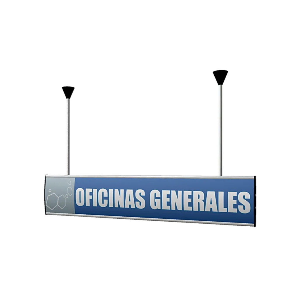 eñal premium con avisos gráficos especiales para colgarse en plafones, techos, escaleras, cuenta con base plástica para una mejor fijación, en gran variedad de tamaños para múltiples mensajes. Película anti reflejante. Fabricado en perfil de aluminio natural, anodizado, satinado, curvo extruído.