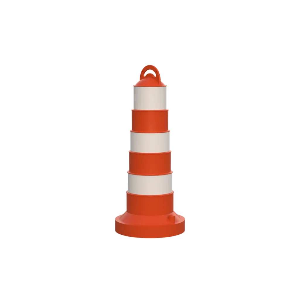 Trafisit de una sola pieza fabricado en polietileno de media densidad con U.V., con base para llenarse con arena con la finalidad de incrementar el peso y la estabilidad. Diseño escalonado con mango para sujeción, totalmente apilables. Resiste perfectamente impactos.